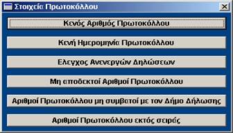 Μετά την εισαγωγή των στοιχείων των δηλώσεων στη βάση δεδομένων, ακολουθεί η διαδικασία ελέγχου της ορθότητας, πληρότητας και μοναδικότητας των δεδομένων. Σε αυτό το στάδιο εκτυπώνονται καταστάσεις των στοχείων τα οποία εμφανίζουν πρόβλημα: